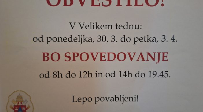 SPOVEDOVANJE V VELIKEM TEDNU bo od ponedeljka do petka (30. 3. − 3. 4. 2026) v baziliki SPOVEDNO DEŽURSTVO od 8. do 12. ure